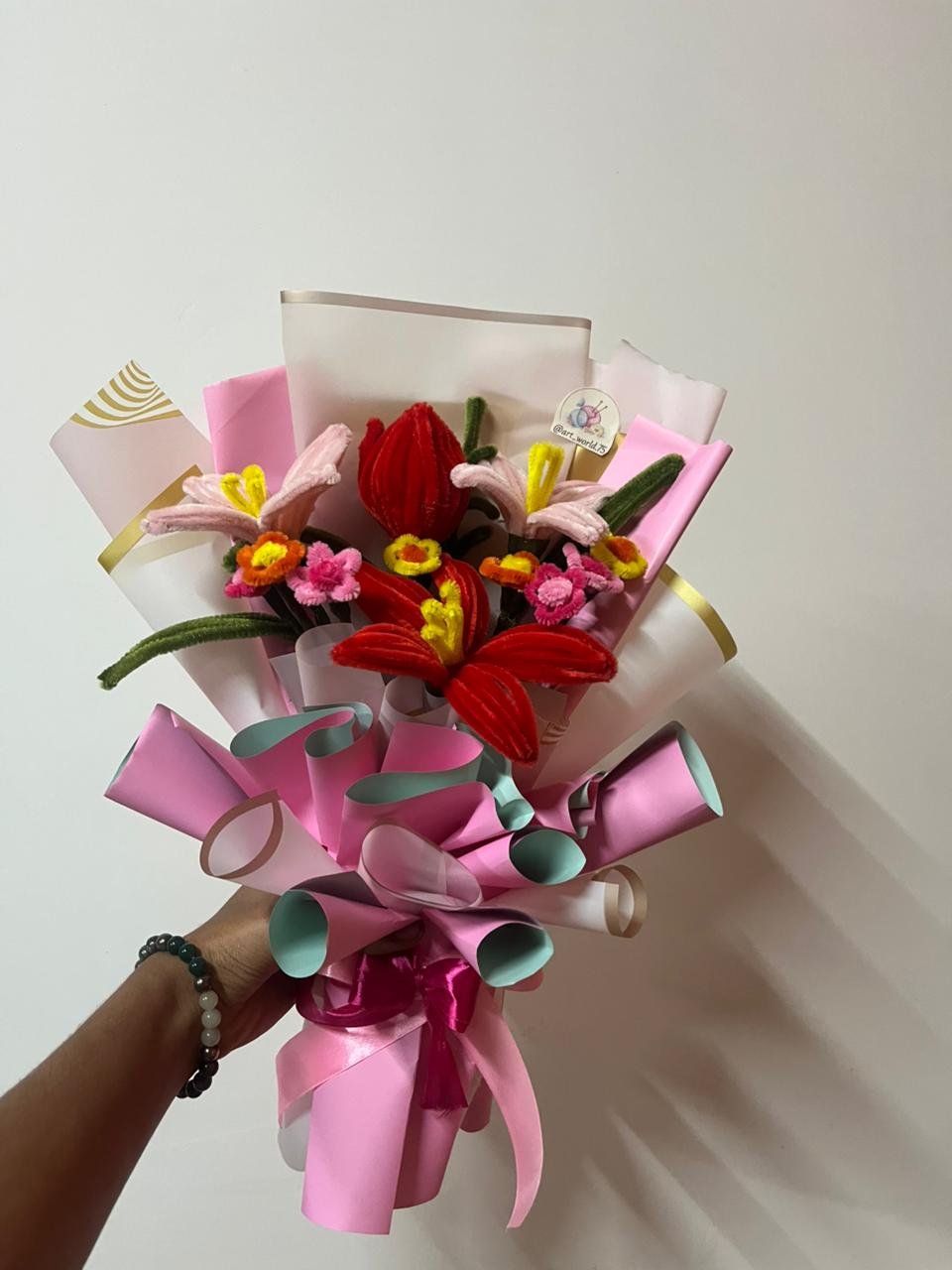 Aesthetic, handmade, and forever fresh ✨ This pipe flower bouquet is beautifully crafted and wrapped in soft pastel tones, making it perfect for gifting, décor, and special moments.